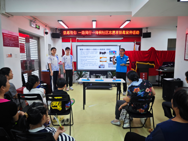 为进一步加强辖区禁毒志愿者队伍建设,扩大禁毒宣传的普及度和影响力,8月29日下午,盐田街道综治办联合海桐社区党群服务中心,邀请辖区20余名志愿者开展以“禁毒有你,一路同行”为主题的志愿者禁毒课堂。
