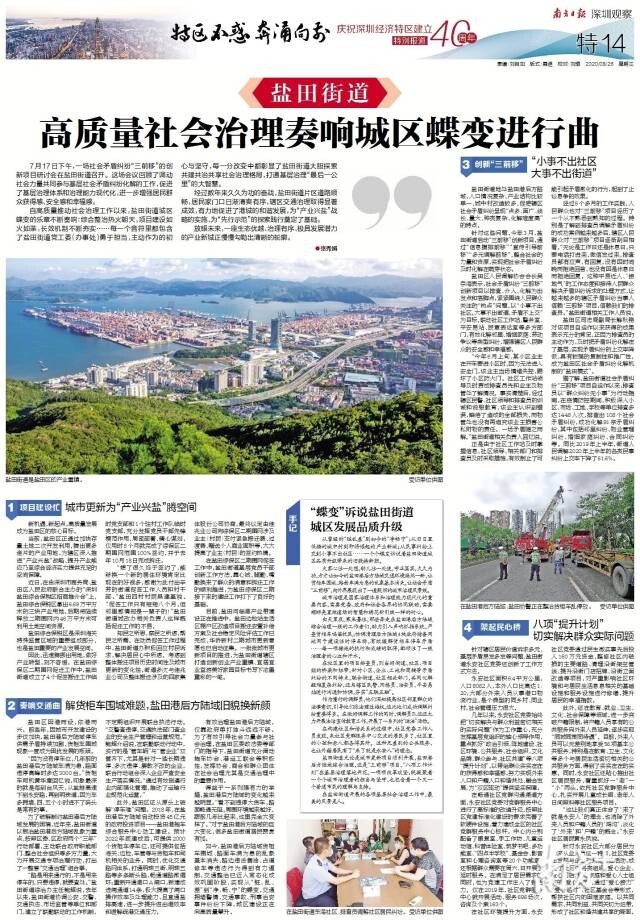 从曾经的“脏乱差”到如今的“净畅宁”;从旧日里低矮的城中村到即将崛起的产业新城;从民事纠纷上交到小事不出社区……一个个蝶变诉说着盐田街道城区品质升级带来的旧貌换新颜。